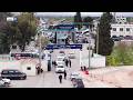 مشاهد من رمات هشارون بتل أبيب تظهر الأضرار نتيجة شظية صاروخ عنقودي إيراني